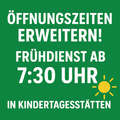 … leider noch nicht mit einem flächendeckenden Frühdienst in den städtischen Einrichtungen. Wir Grünen haben die Gebührenerhöhung, die seit diesem Monat greift, mitgetragen. Damit verbunden waren weitergehende Forderungen unsererseits.